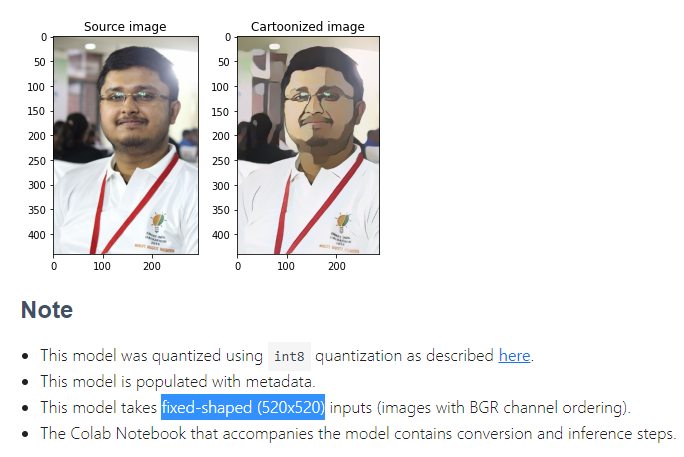 이미지를 만화같은 스타일로 변환해주는 모델인데 재미있을 것 같아서 모델 파일을 다운로드 받고 플러터 프로젝트에 적용 해봤습니다.